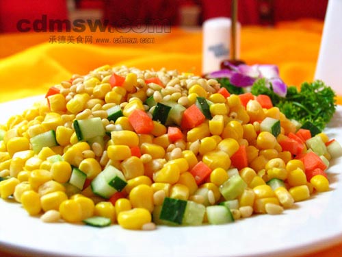 松仁香酥,玉米甜嫩,食后清香回甜,会为家宴增添一抹漂亮的色彩,玉米中含有丰富的矿物质,蛋白质和脂肪。中医认为其味甘,性平,可调开胃口,益肺宁心,有健胃利尿之功用。