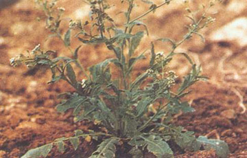 形态特征 茎直立,株高20一50cm,有分枝,全株具毛。叶分根生叶和茎生叶两种。前生,具柄,叶片有羽状深裂,有的具浅裂或不裂;茎生叶披针形,基部包茎,边缘生缺刻。总状花序顶生,花小有柄,尊片4个,长椭圆形,花瓣4片白色,倒卵形排列成十字。短角果为倒三角形,扁平,含种子多粒。以种子繁殖。 生态特点 生于农田或路旁。