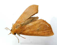 水稻叶夜蛾属鳞翅目,夜蛾科。成虫体长14~16毫米,翅展30~36毫米。体暗褐色,前翅灰褐色,外缘线由7个黑斑组成,亚外缘线为灰白色波状纹。肾状纹黑色,周围灰白色,环状纹灰白色,中央灰褐色。后翅白色,外缘淡灰色。卵扁球形,直径约0.5毫米,表面有微细格子纹,产卵成块,复盖黄褐色绒毛。幼虫一般6龄。3龄前幼虫草绿色,气门线白色,在气门线附近有1条紫红色线。4龄后各腹节亚背线内侧有1个眉状黑斑。老熟时体长30~37毫米,体色多变,自淡绿至墨绿色,大发生时灰黑色。被蛹红褐色,腹背第2~7节的前缘密布小刻点,腹末腹面中央向内凹入,尾端具钩刺2个。